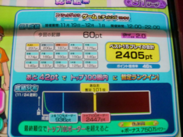 2013-11-24 スペジャンゲームにチャレンジ リトライに挑戦! その1 アンサー×アンサー 先週の火曜からスペジャンのゲームに挑戦しました。 プレイした人には知ってますが、ドラクエ、モンハン、ポケモンやパズドラなどの最新問題ばかりだったので、レトロゲーマーの自分にとって苦戦しました。 だが、同じ問題が何度も出てきたので、ptを貯めてきました。 今日までやってこんな結果です。 オボロさんや数部さんには及ばないんですが、トップ100に迫る勢いです。 ここまでためて来たからにはトップ100目指したいです。