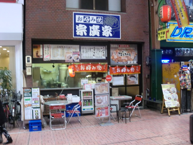 2014-01-26 宗廣家 ドラえもん 名古屋の大須にある「宗廣家」というお好み焼き専門店に寄りました。 ここに寄った理由(わけ)は「ジャイアン」がつくメニューがあるので寄りました。「焼きそばジャイアン」を注文しました。ジャイアンより少ない「焼きそばジャイ子」もありました。 それから焼きそばジャイアンが来ました。 焼きそばの上に目玉焼きをのせて980円です。これを食べるため朝食を抜いてきたので10分後、難なく完食しました。