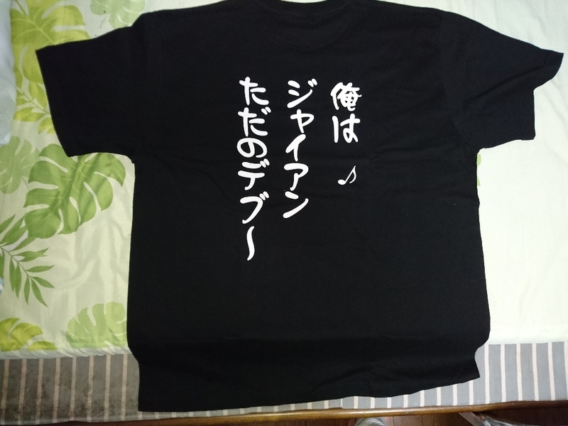 2016-06-15 祝 ジャイアン生誕記念 ドラえもん 今日はジャイアンの誕生日なので、記念としてジャイアングッズの一つを紹介したいと思います。 「俺は♪ジャイアン ただのデブ~」という文字をプリントされたTシャツです。 このTシャツの画像を見て、吹きましたww 面白いTシャツだなと早速注文しました。イベントやオフ会などで、恥ずかしながらこのTシャツを着ていると思うのでわかると思いますよ!