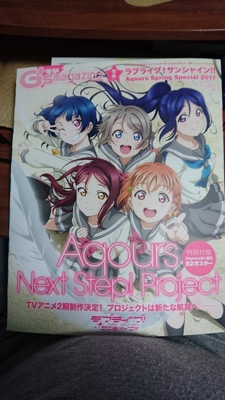 2017-03-05 Aqoursとともに次なる航路へ! ラブライブ!サンシャイン!! 1stライブから一週間たちましたが、ラブライブ最新情報満載の雑誌、電撃G`sマガジンの号外「ラブライブ!サンシャイン!!Aqours Spring Special 2017」を買いました。 内容はTVアニメ2期の放送決定や2nd Live Tourの決定、テーマソング、ユニット、デュオユニットのCDの発売や、ファンブックやアニメのオフィシャルブックやコミック版2巻の発売という緊急情報満載で、 他にもAqoursのキャストのインタビューや、アニメ1期のエピソードなど記載されています。 ラブライバーなら絶対見逃せませんぜ!!