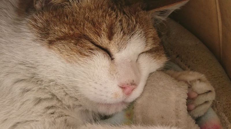 可愛い猫の寝顔を撮ることができました。これを見て癒して下さい。