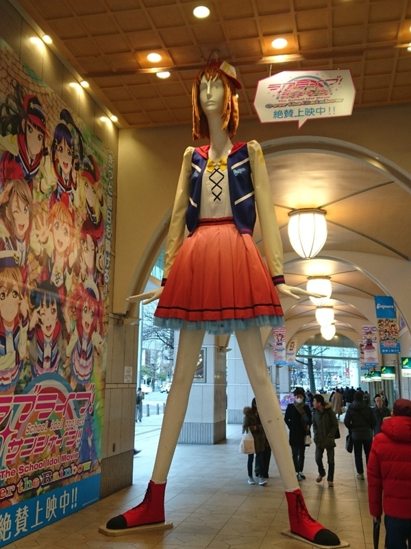 2019-02-11 ななちゃんにんぎょう ラブライブ!サンシャイン!! 昨日名古屋駅にある巨大な人形「ナナちゃん人形」がちかっちのコスプレしているというので見てきました。 う~んまさに普通怪獣ちかっち!! アングル変えて ラブライバー限らず足を止めて写真撮っていました。 他にも 地下道へ向かう階段付近も。 アニメ(1期13話)もナナちゃん登場しましたね。